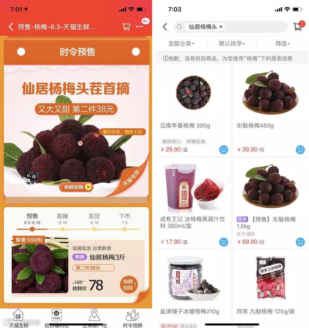当然你可能会说,我在盒马上下单,一小时内就可以吃到杨梅,我在天猫下单却要等上几天,所以哪怕贵点,我也乐意用盒马。虎嗅精选只能说,盒马满足的更多的是偶发随机性需求,而通过天猫,却解决的是日常、可计划性需求,显然,后者才是消费的大头。
