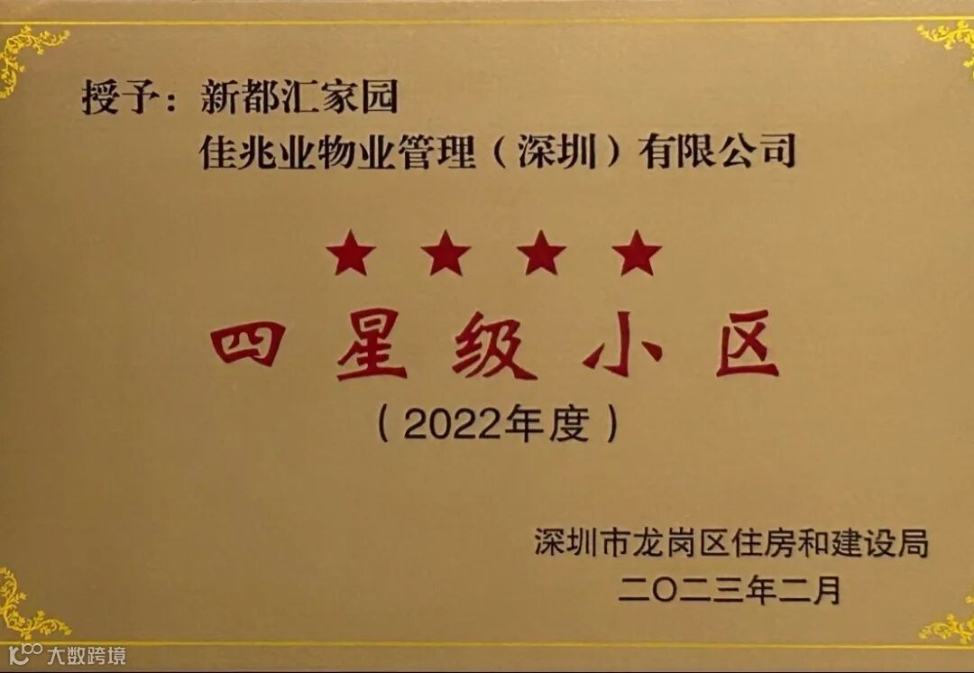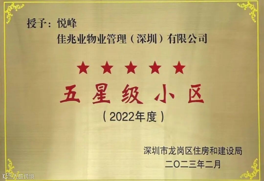 2月16日,在深圳市龙岗区住房和建设局召开的2022年度龙岗区物业服务行业总结暨表彰大会上,佳兆业美好深圳分公司悦峰项目获颁“2022年度五星级小区”奖牌,新都汇项目获颁“2022年度四星级小区”奖牌。