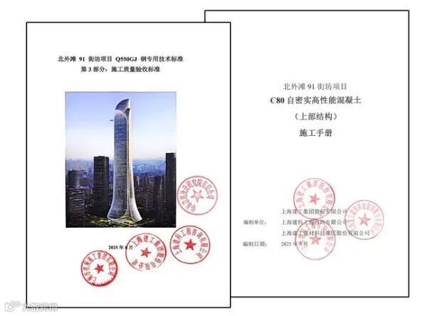 集团下属工程咨询公司为该项目提供工程监理、第三方安全管理等服务。自2025年5月27日塔楼全面出“正负零”转入地上主体施工以来,项目在场地布置、新材料、新装备、新工艺、组织管理等方面面临全方位挑战。咨询公司现场监理团队迎难而上、梳理各项困难,超前策划、充分准备,制定针对性解决方案。围绕不同阶段工况,配合建设单位、联合施工单位,分段制定场布方案,严格执行;通过参与编制项目《Q550GJ钢专用技术标准》、《C80自密实高性能混凝土施工手册》等关键管控文件,为新材料、新工艺应用建立标准;采取制定拼装、提升及使用阶段针对性管控表格、梳理管理流程的方式,为“筒柱一体化”钢平台量身定制管理模式;建立分专业、分工序监理事前交底制度,明确管理要求,过程中严格执行三级举牌验收制度,强化多重管理,应对常规质量、安全风险。上述举措有力地保障了施工质量、安全与进度,为确保百米目标实现发挥了重要作用。