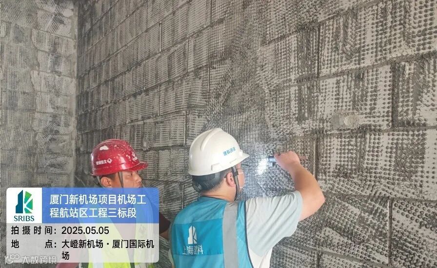 五一期间,厦门新机场项目进行墙面拍毛挂网工作,项目员工持续为工程跟踪技术服务。