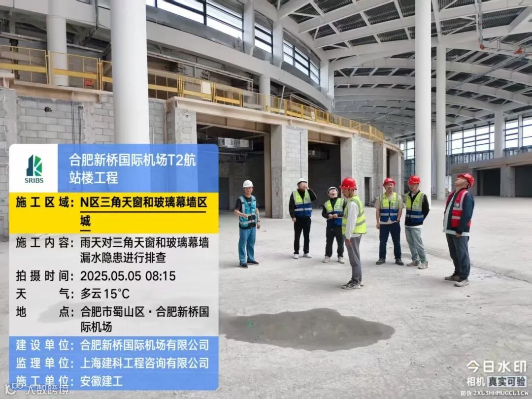 五一期间,合肥新桥国际机场T2航站楼项目监理组织施工单位进行渗漏检查。