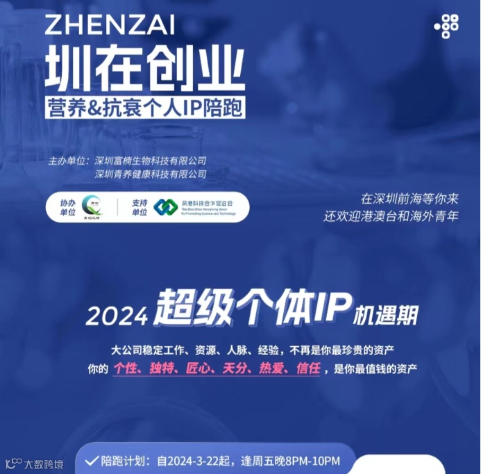 2024年3月22日,由前海产学研孵化器协办,深港科技合作促进会支持,富楠生物及青养健康主办的“圳在创业”计划,开启首场活动。该计划将在2024年为个体创业者提供轻创业机会。
