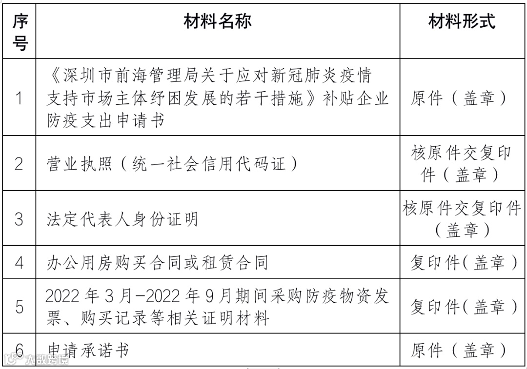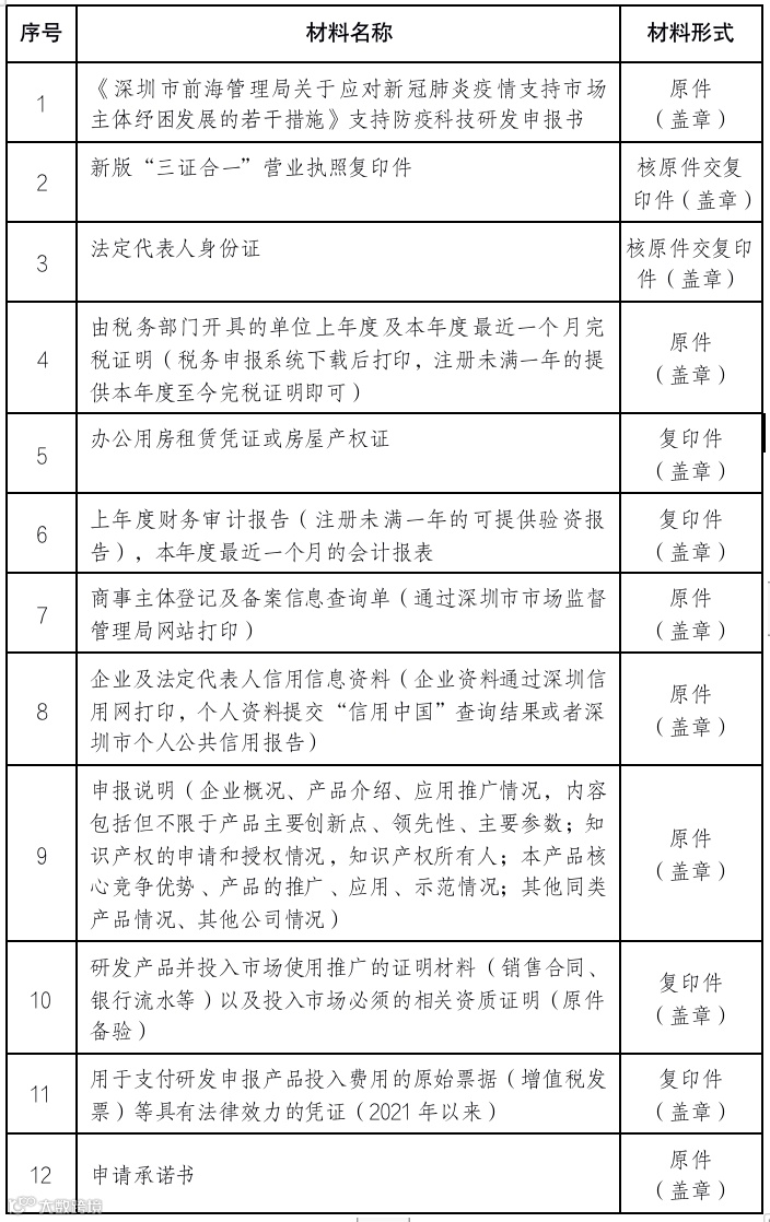 注:所有材料签字盖章交至前海国际人才港防疫惠企专窗(地址:深圳市南山区梦海大道5073号五层前海国际人才港防疫助企窗口,联系电话:0755-86558302),须将申报书连同上述附件打印完整材料(一式三份,A4规格,正反面打印,附有目录及页码,装订成册,加盖骑缝章)。