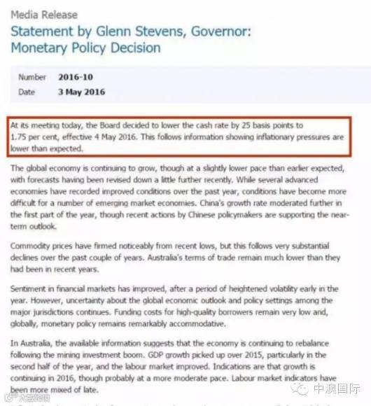澳联储数据标明,澳洲近期的通货膨胀压力低于预期。降低利率、放宽货币政策,必将引发新一轮“投资海啸”! 这对于澳洲房市而言,是重大利好!!