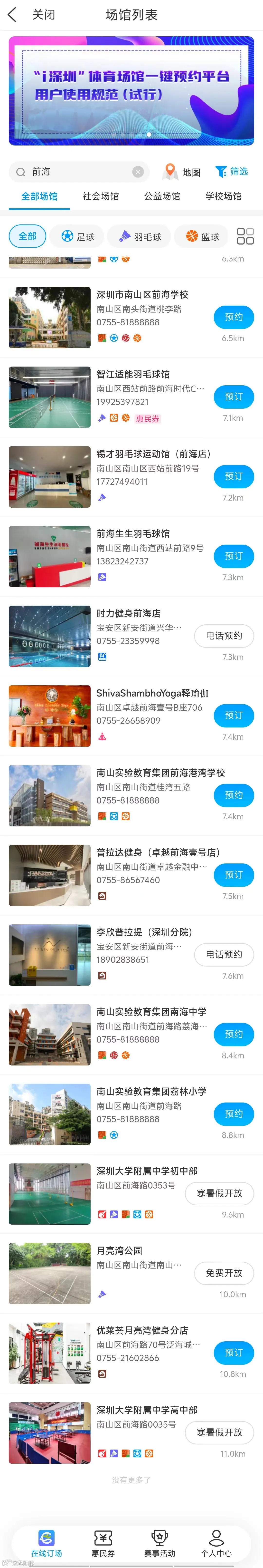 同时,平台的“筛选”功能还能选择区域、预约方式和距离优先,供市民选择最合适的运动场馆。