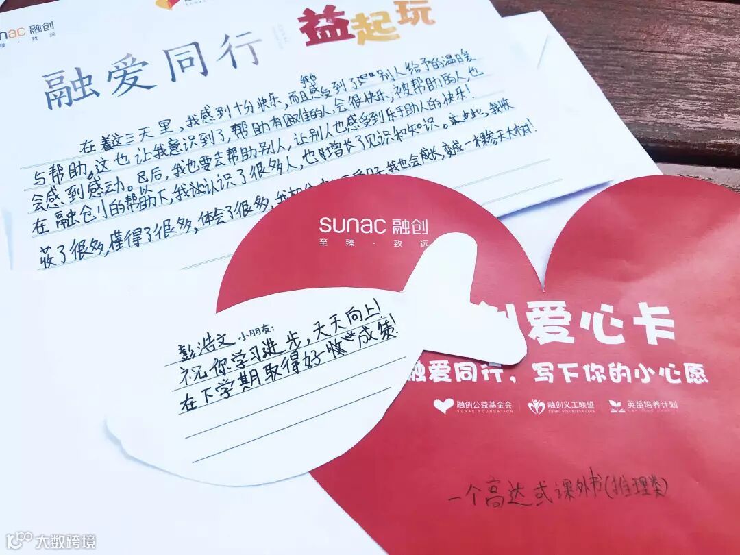 “看到孩子们写的话,我感觉自己所做的一切都是值得的,他们给我的感动远远超乎想象。”在最后的义工证书颁发环节,义工团的姚莎莎说到。