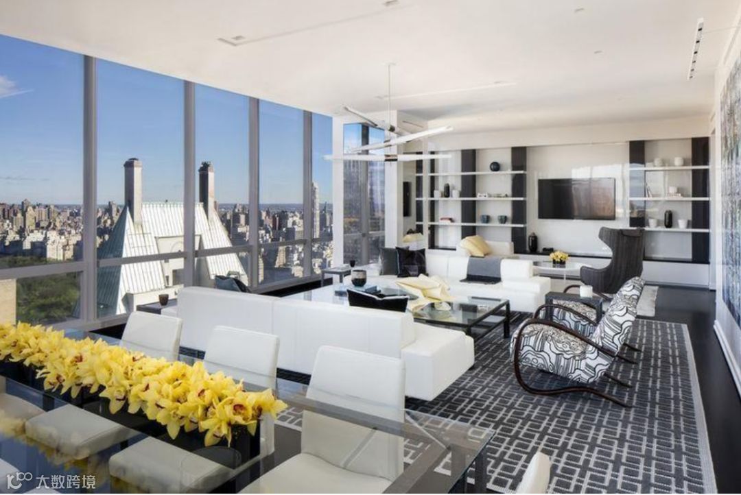 纽约ONE 57和伦敦ONE HYDE PARK,在某种程度上将边户横置设计发挥的最为淋漓尽致,开启了传统户型产品「转型」的先河。ONE 57在面临中央公园一侧的边套,均采取横向巨幕采光面,搭配挑高落地窗,将开放的视野迎入客厅的两面,俯瞰中央公园全景,曼哈顿全景繁华一览无余。