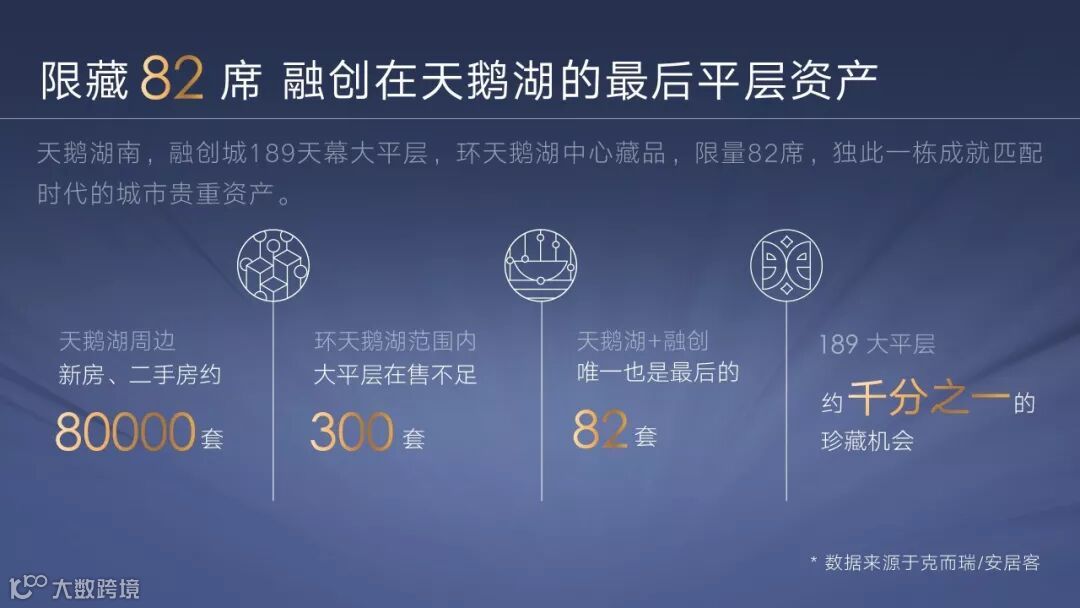 据不完全数据统计,环天鹅湖新房+二手房共约80000套,大平层产品却屈指可数。融创城189大平层仅余82席,千分之一的珍藏机会转瞬即逝,注定将成为少数人的身份象征。环天鹅湖融创时代最后的平层资产,抢驻城市价值高地的难得机遇。