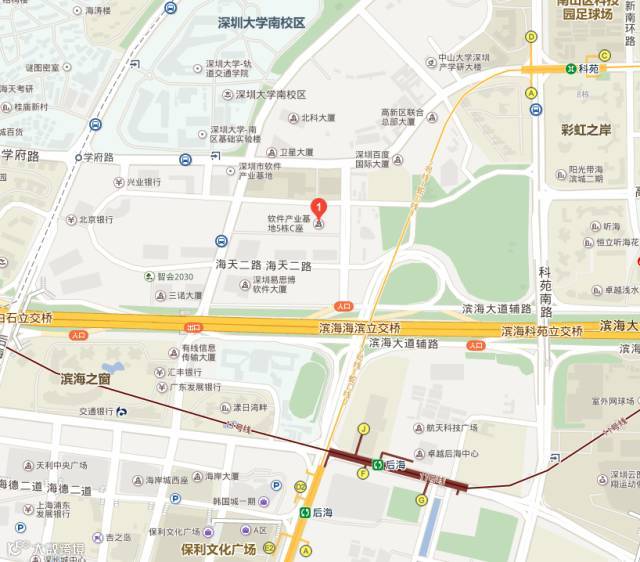 2号蛇口线至科苑A出口,出口往回走20米即可看到深圳软件产业基地,步行至5C只需8分钟。