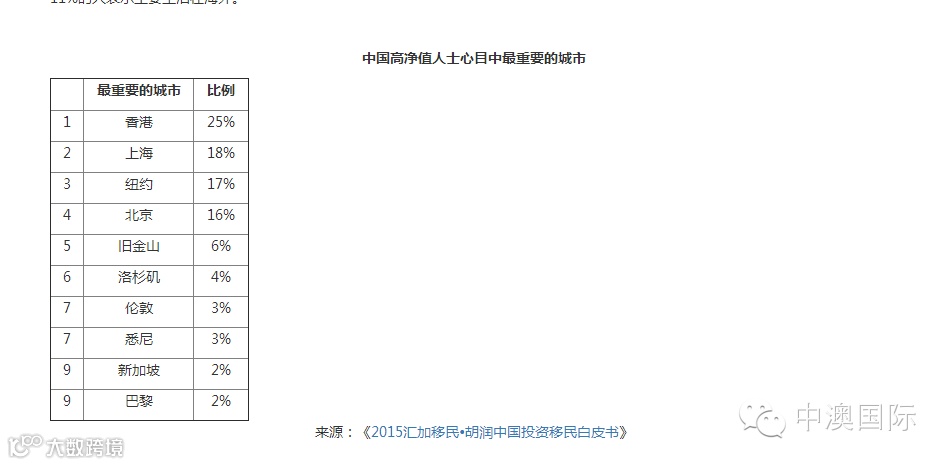 胡润百富和汇加顾问集团11月27日发布的《2015中国投资移民白皮书》显示﹐洛杉矶、旧金山、纽约跻身最受中国富豪青睐的前三名﹐美国占据了前十榜单的半壁江山。