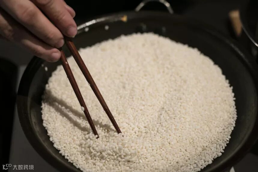 2、将糯米放入锅里干煸一下让糯米更香