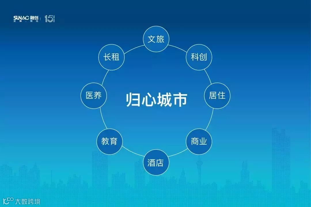 “归心城市”依托融创全产业链优势、跨领域资源整合能力,将商业、酒店、科创、文旅、教育、医养、长租等资源纳入城市综合功能的开发运营,提升综合配套能级、拓展产业承载空间,创造生产、生活、生态相融的城市聚落,更新城市未来。