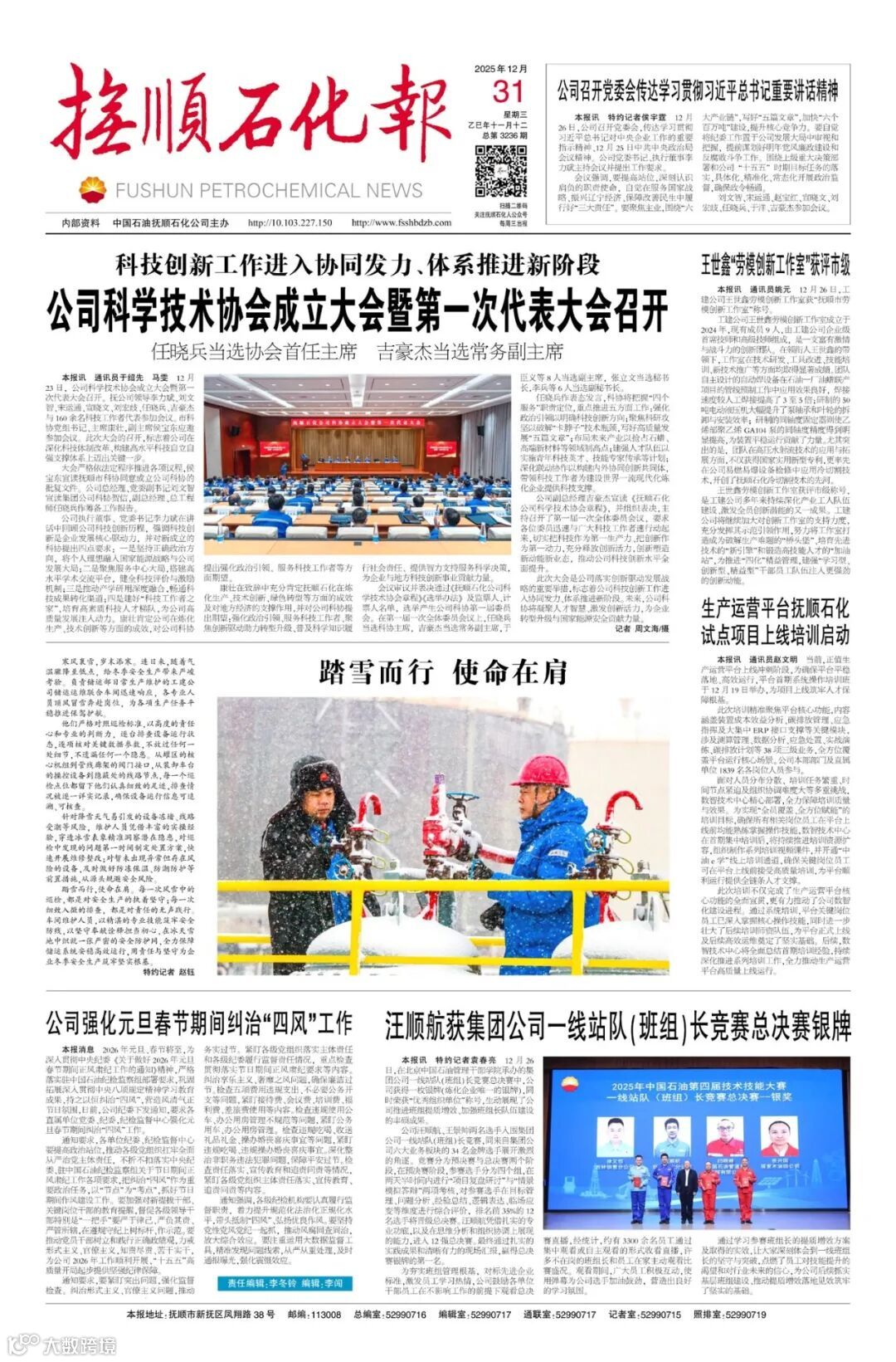 导读:《抚顺石化报》2025年12月31日