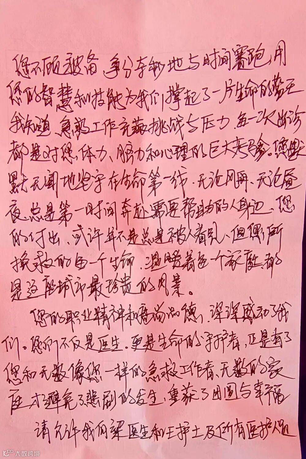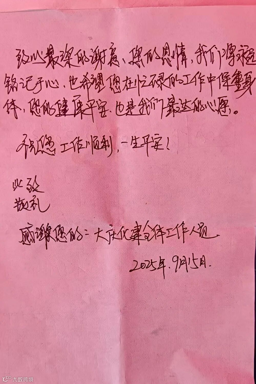 手写的感谢信