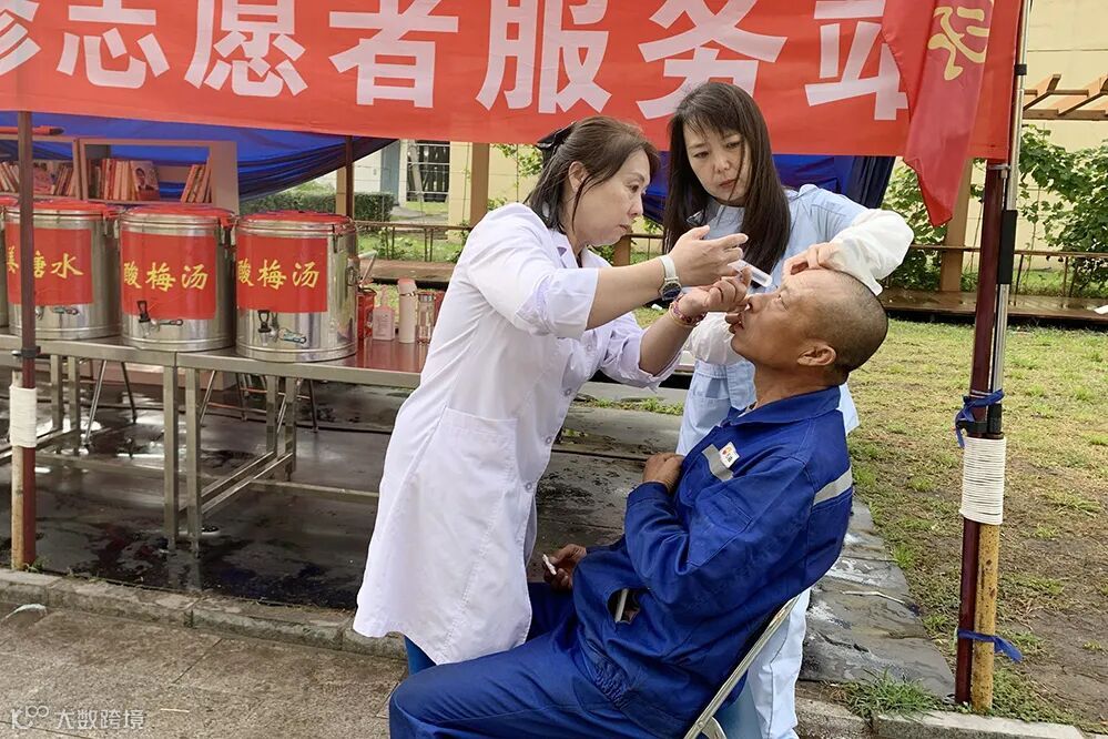 9月17日,洗化厂医疗服务站里,护士夏英正在给一位身穿红色工装的监护人员测量血压。“我们医疗服务站配备了防暑降温、降压、治疗腹泻的药品,消毒用品及血压计等医疗器材,为医疗服务提供了充足的保障。”2名医务人员着绿色医护服装,顶着酷暑高温,热情细致地为检修员工做健康指导。