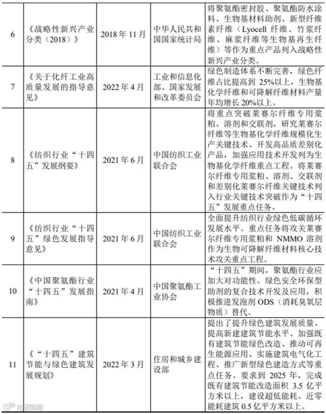 从我国来看,莱赛尔纤维属于国家战略性新兴产业,工艺装备先进、绿色环保、可实现资源循环利用,符合国家“十四五”规划纲要的发展方向,被列为《中国制造2025》绿色制造重点发展方向。