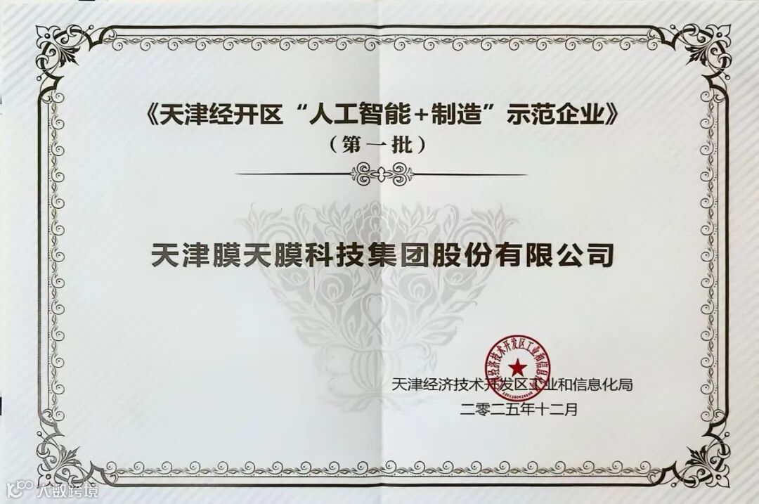 近日,天津膜天膜科技集团股份有限公司(简称 “津膜科技”)斩获天津经开区首批 “人工智能 + 制造” 示范企业称号,成为区域环保装备智造领域标杆。此次获评源于公司在 AI 技术与膜制造深度融合的突破性实践。依托博士后科研工作站平台,津膜科技研发的纤维膜组智能无损检测,填补行业空白,推动膜产品检测从“人工研判”迈入“智能诊断”新阶段。