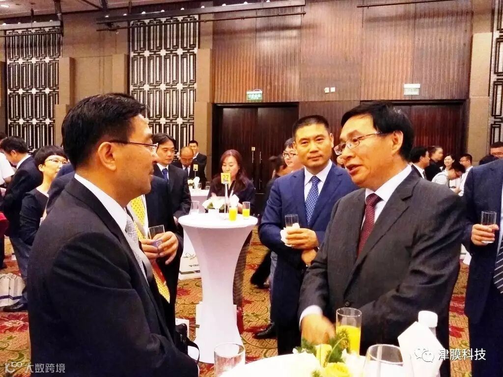 在随后的冷餐交流会上,张玉卓书记与范宁总经理亲切交谈,张玉卓说,我在神华时就了解津膜科技,双方有不少合作,作为在滨海新区成长起来的高科技上市企业,津膜科技要始终坚持技术创新,加快成果产业化,通过新产品、新工艺提升核心竞争力,为水环境改善,尤其是工业领域高难污水处理、回用和零排放提供更多解决方案。同时要立足滨海,服务滨海,为滨海新区与天津市实现绿水青山继续作出新贡献。政府将大力从双创、人才引进、资源对接等方面创造良好的发展环境,支持企业做大做强。
