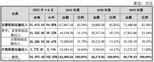 报告期内,公司内贸运输业务收入占主营业务收入的比例分别为59.35%、57.92%、59.80%和 54.03%,外贸运输业务收入占主营业务收入的比例分别为 40.65%、42.08%、40.20%和 45.97%。公司内、外贸运输业务收入占比较为稳定。