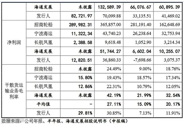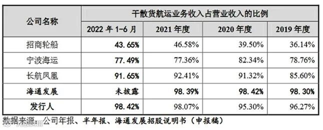 报告期各期,公司干散货航运业务收入占营业收入的比重均在 95%以上,因此选择主营业务中干散货航运业务占比较高,且易取得公开披露信息的国内上市(含 IPO 在审)公司作为同行业可比公司,符合条件的可比公司包括招商轮船、宁波海运、长航凤凰和海通发展。