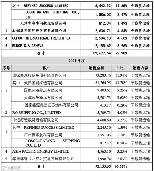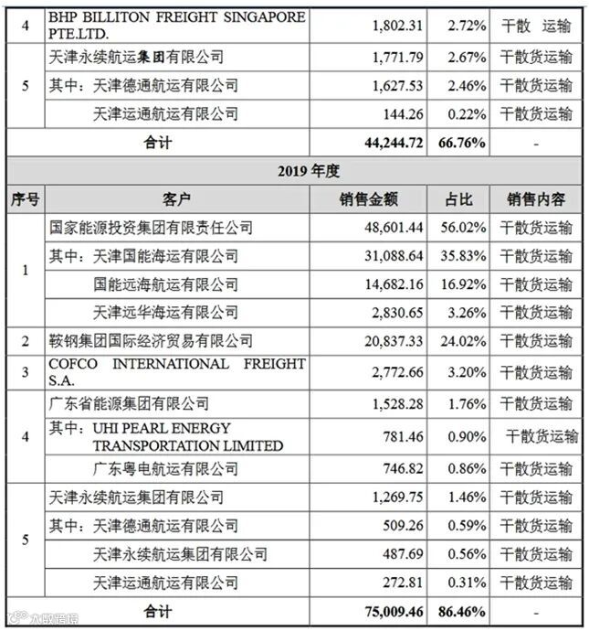 目前,公司的客户类型已涵盖煤炭、钢铁、矿石和粮油等多个领域,与国家能源集团、BHP(必和必拓)、RIOTINTO(力拓)、大唐、华电、嘉吉、鞍钢、宝钢、中粮、华能、中远海和广东能源集团等客户建立了较为稳定的合作关系。稳定和多元化的客户资源不仅有利于提升公司的盈利能力,更有利于提高公司的抗风险能力,确保公司持续稳定发展。