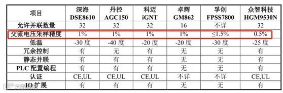 公司并机控制器产品的性能参数基本上与国外先进厂商处于同等水准,其中,交流电压采样精准度方面,公司明显领先其他企业。