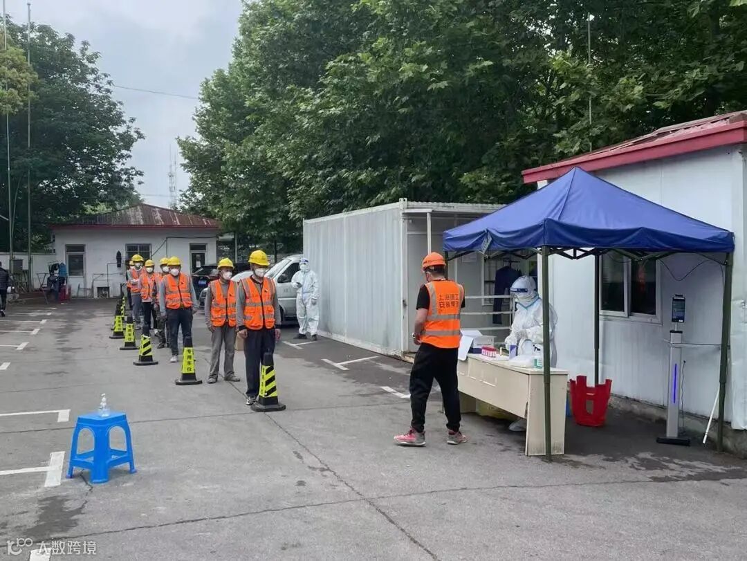 复工后,按照涉疫工地核酸检测频次不低于每天1次,非涉疫工地核酸检测频次不低于每2天1次,抗原检测频次不低于每天1次,加大核酸和抗原筛查力度。以班组为单位形成作业小队,指定专人负责生活区到作业区点对点、全过程的监管和引导工作,严格落实“两点一线”闭环管理。对于材料及生活物资严格按照“三不准两消杀”后方可进场。利用数字哨兵、监控探头、场所码等智能手段加强门岗管理。