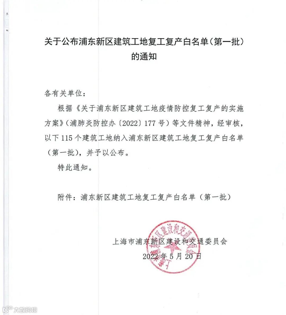 根据市住建委关于“现阶段复工复产以对行业发展具战略性、引领性等重要性突出的项目为主”的要求,通过对疫情防控、现场条件、复工复产准备情况等方面的综合考量,5月20日,公司负责代建的三段杨高路、东西通道、沪南公路和沪南公路污水总管工程等16个工地被列入《浦东新区建筑工地复工复产白名单》(第一批),此次复工复产工地覆盖新区范围内24个街镇。