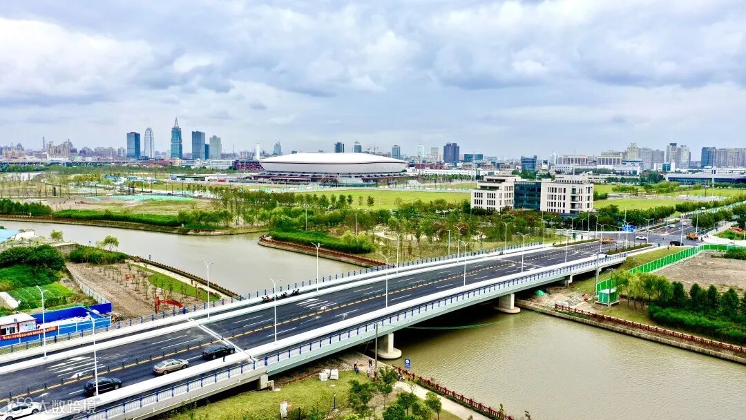 广兰路(云顺路-金槐路)新建工程,道路南起云顺路,北至金槐路,规划道路等级为城市次干路,红线宽度为32m,道路全长400米,其中张家浜河桥全长179米,由4跨预制板梁和3跨钢箱梁组成。本工程的建成使金港路从龙东大道至金海路全线贯通,完善了金桥地区及浦东足球场周边的交通路网。