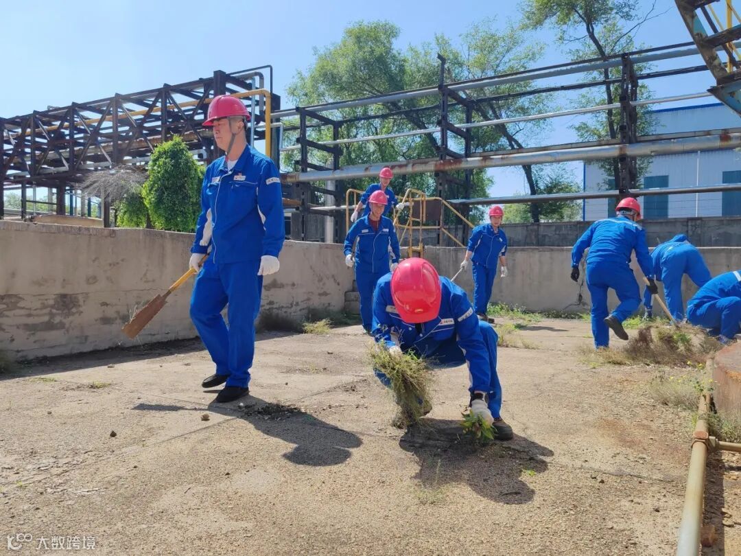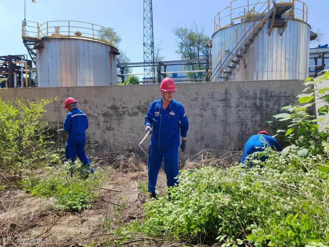 由于油品装置的罐区较多,并且罐区中的杂草和小树长势茂盛,给员工造成极大的清理难度,同时也在巡检过程中影响员工的出行安全。油品员工一直期待着党组织能够给予一定的帮助。在听到油品员工的心声后,党总支立即组织开展“罐区焕新颜,助力大检修”党日活动。在炎炎烈日下,党员们深入灌木丛中,不惧蚊虫叮咬,用镰刀和手锯等工具处理掉大量手臂粗细的小树,再依靠肩挑背扛,将锯下的树干运出罐区。通过30余名党员的共同努力,经过几个小时的奋战,终于将9号、85号罐区以及撬装设备周围的杂草和小树全部清理完毕。罐区的环境焕然一新,地面干净整洁,巡检通道畅通无阻。巡检员工看到党员们的辛苦付出后竖起了大拇指,他们纷纷表示,清理后的罐区环境整洁,巡检效率也提高了!