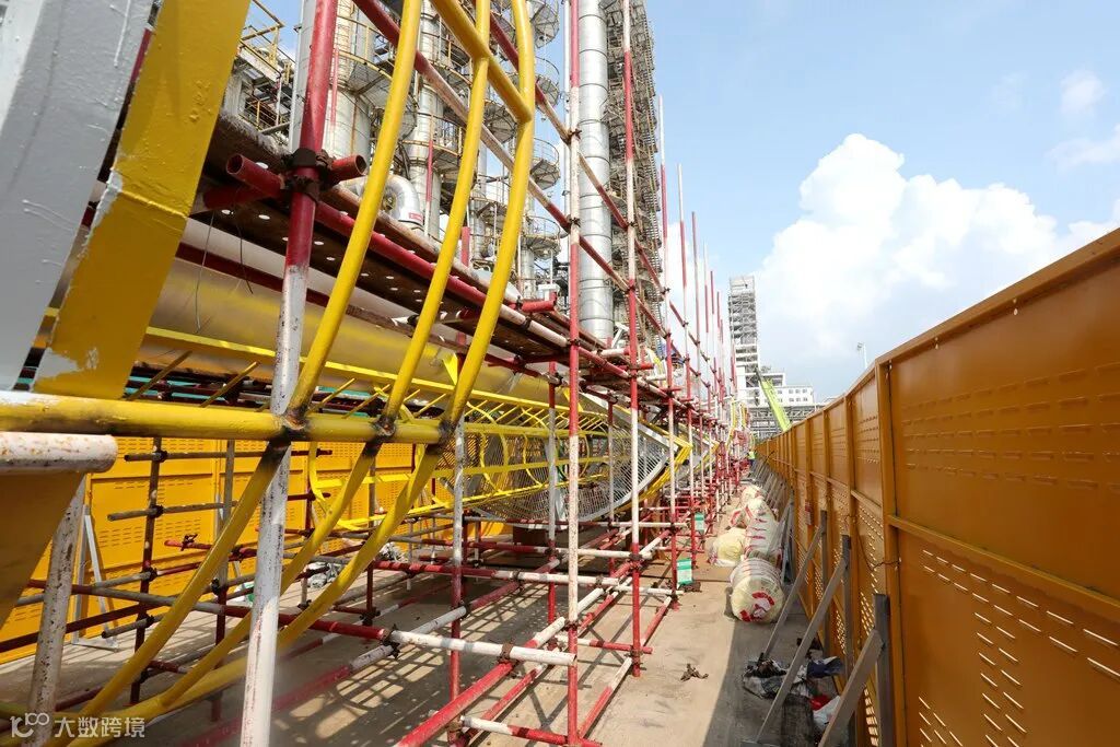 “仅我们乙烯装置涉及的工艺管道、伴热线总长约47公里,可以绕标准足球场转117 圈。”8月4日午后,乙烯装置改造现场,监护人员正在进行作业中的安全检查。阳光下,新旧管线的接口与密密麻麻的管道、设备交织成独特的工业图景,如钢铁血管般蔓延。