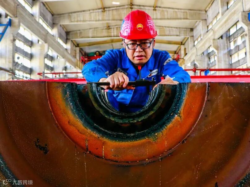 厂房内,身着石化蓝、头戴红色安全帽的检修工人正专注于设备的精密检测。他手中的工具紧贴着泛着金属光泽的工件,目光透过镜片锁定每一道细微刻度,指尖在数据记录上精准落点——这是工建公司大检修现场的一个缩影。