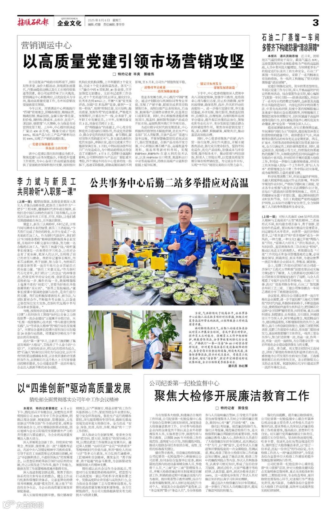《抚顺石化报》2025年8月6日 抚顺石化人