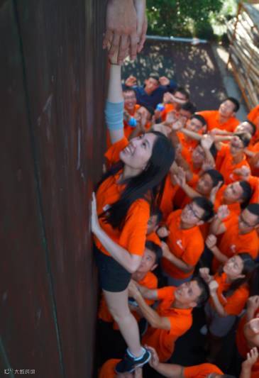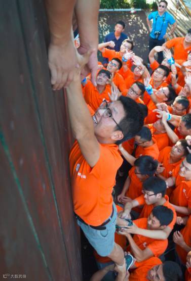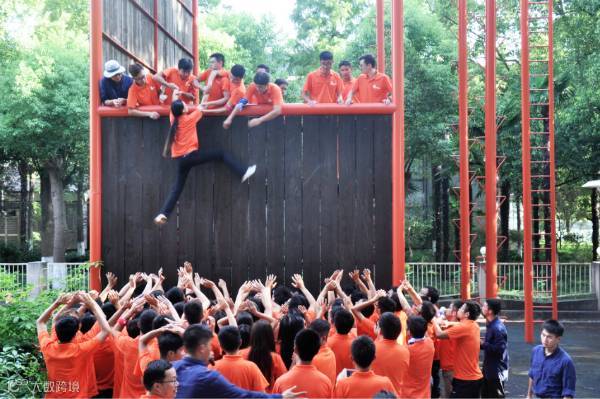 作为最后一个项目,“毕业墙”也是最难的一个项目。面对耸立的高墙,新员工们抛却了“队伍之分”,排人墙、搭人梯、拉拽、托举。汗水糊住了眼睛就抹一把,浸透了衣服就拉一下。在大家的通力合作下,墙下的队员们上去了一个又一个。在智慧与勇气的碰撞中,看似空洞的“团队精神”也变得鲜活起来,集体的凝聚力在一双双坚毅的眼睛里透亮起来。