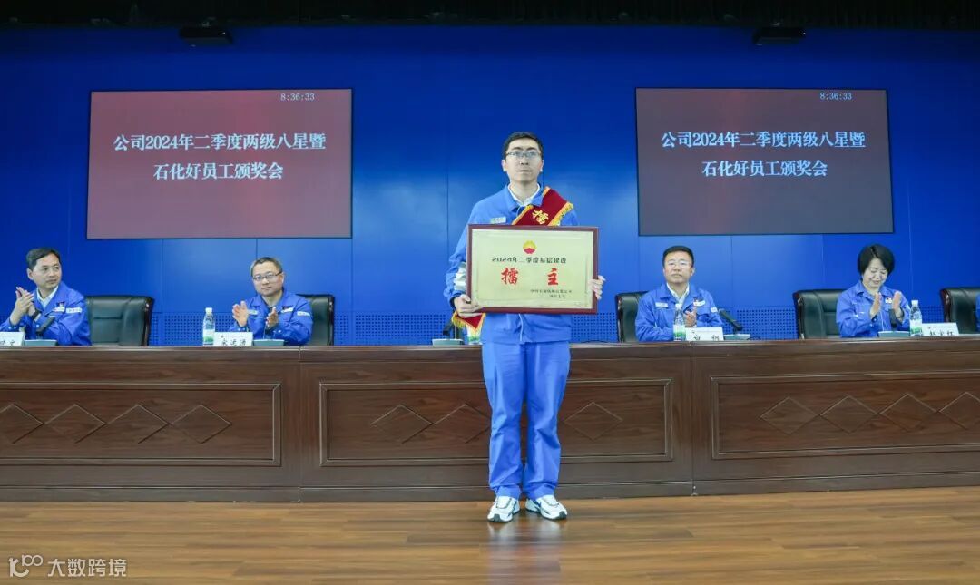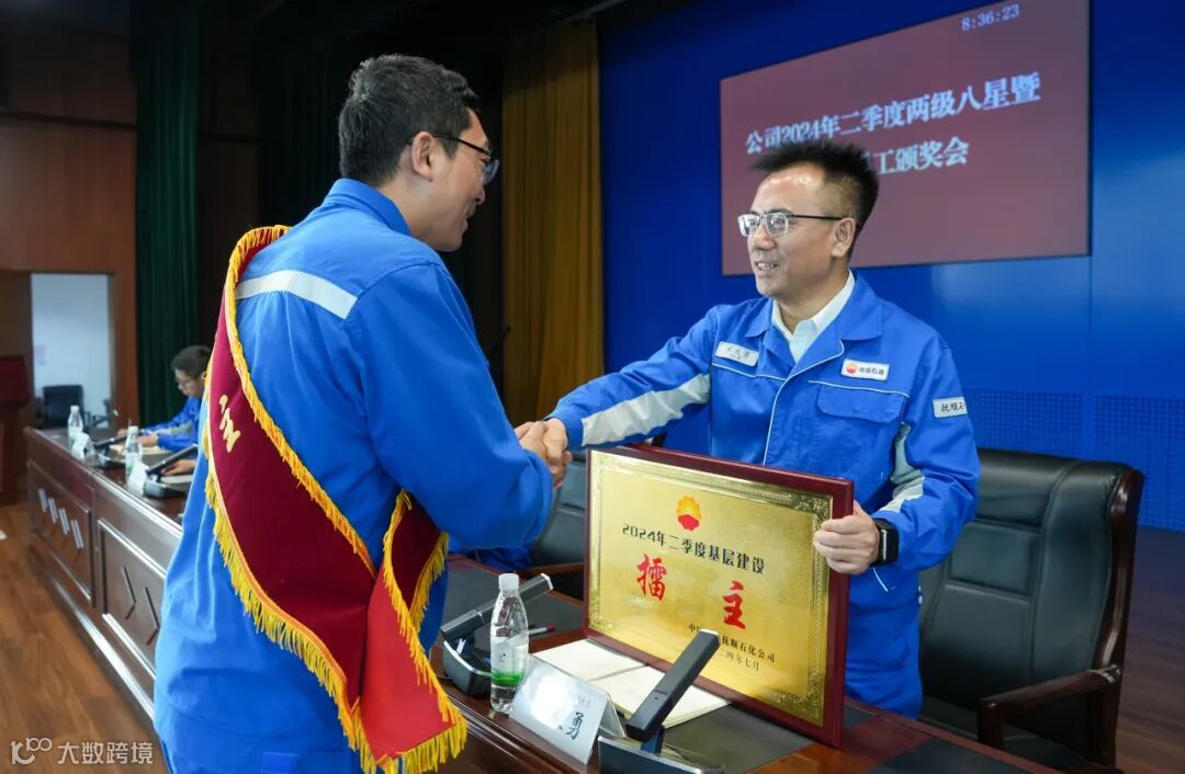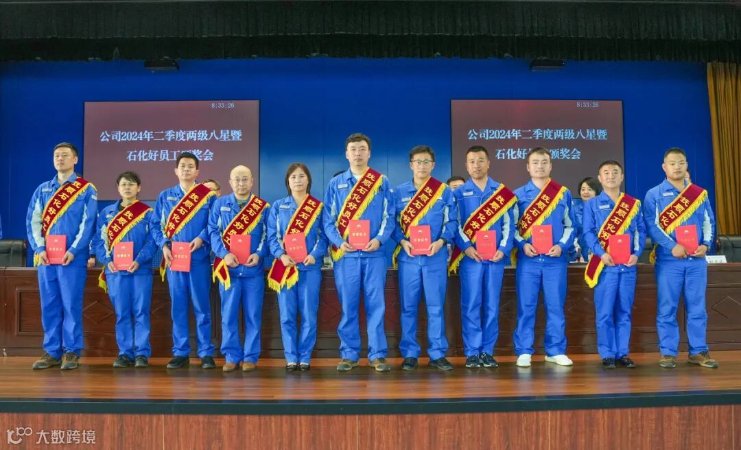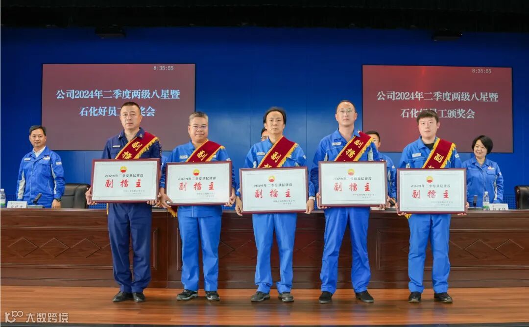 7月22日,公司领导在生产经营周例会前为二季度两级八星评比获奖单位和石化好员工颁奖。