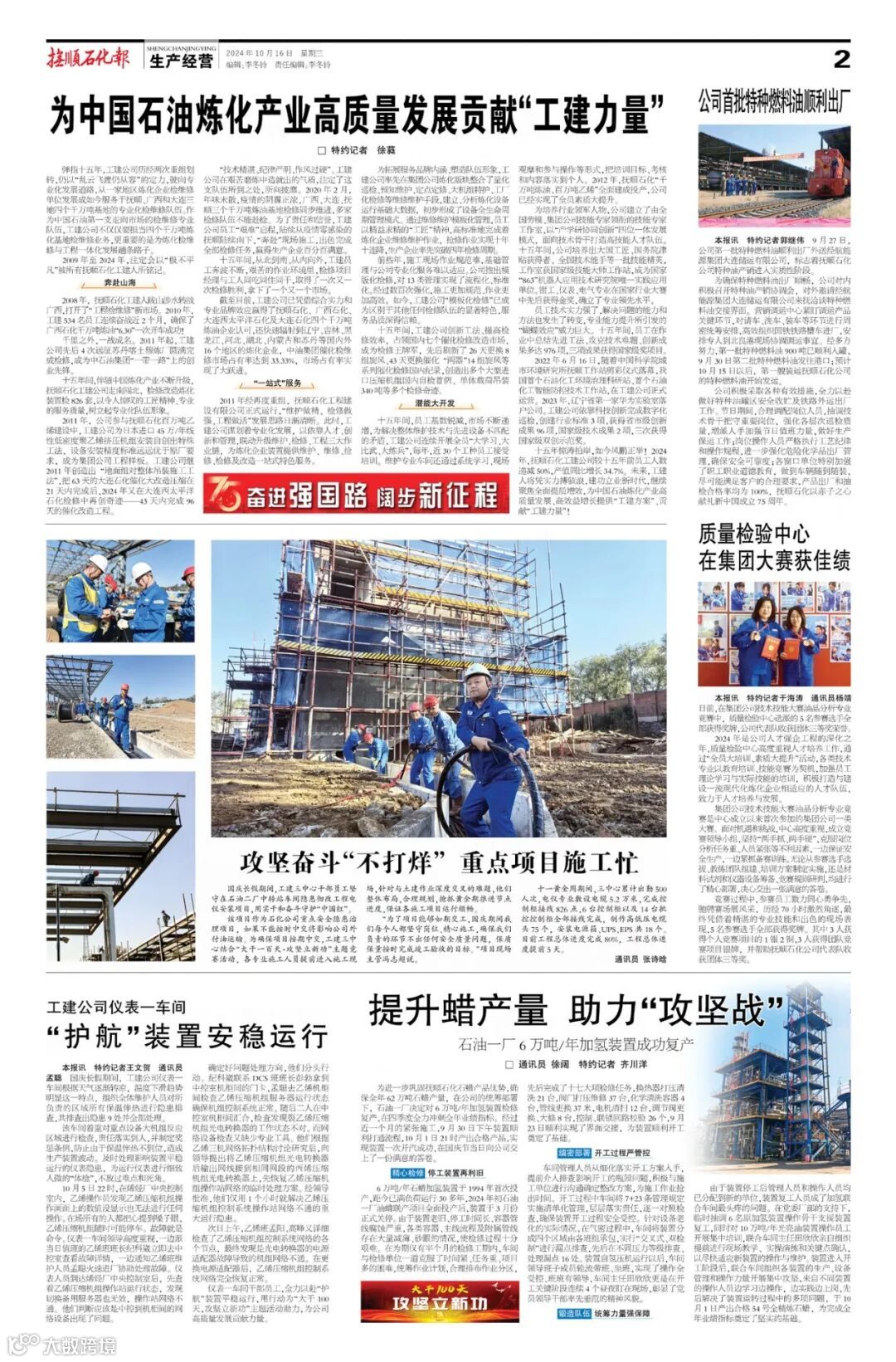 导读:《抚顺石化报》2024年10月16日