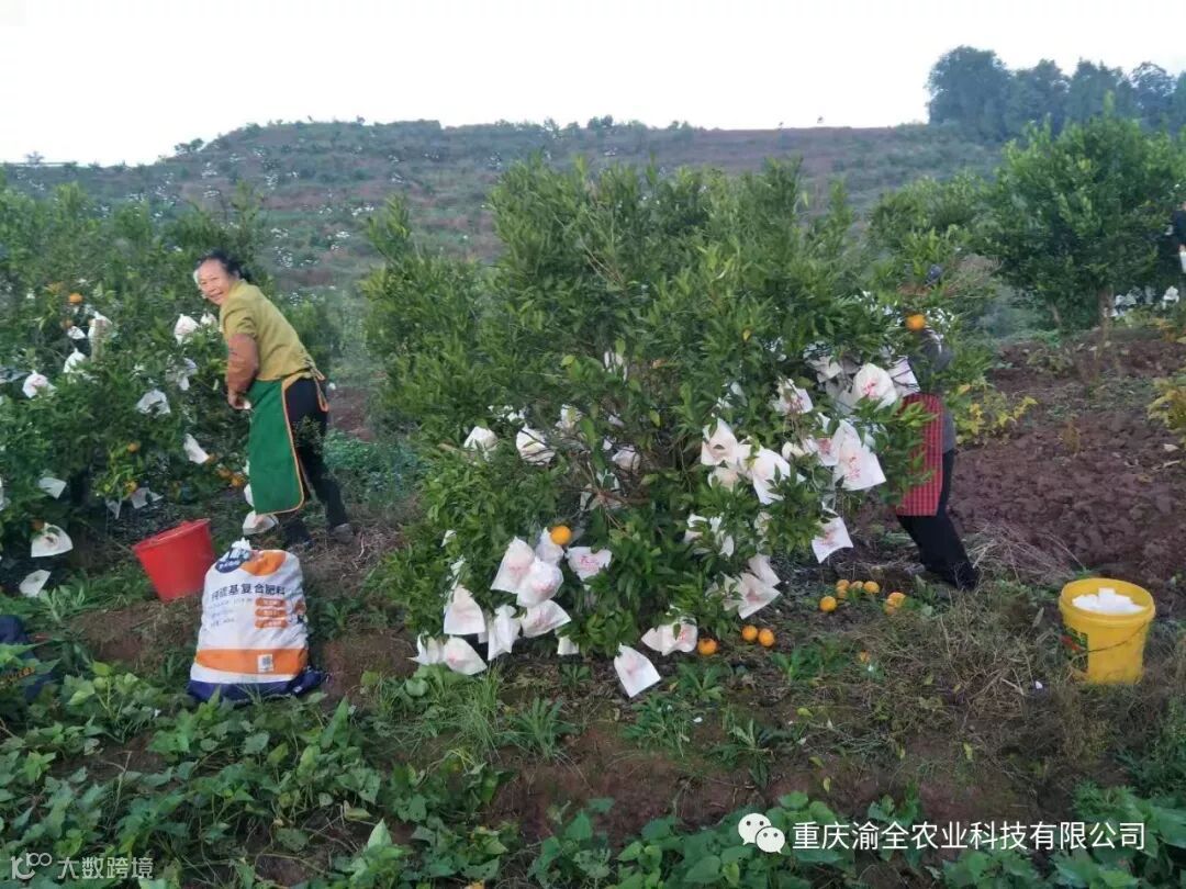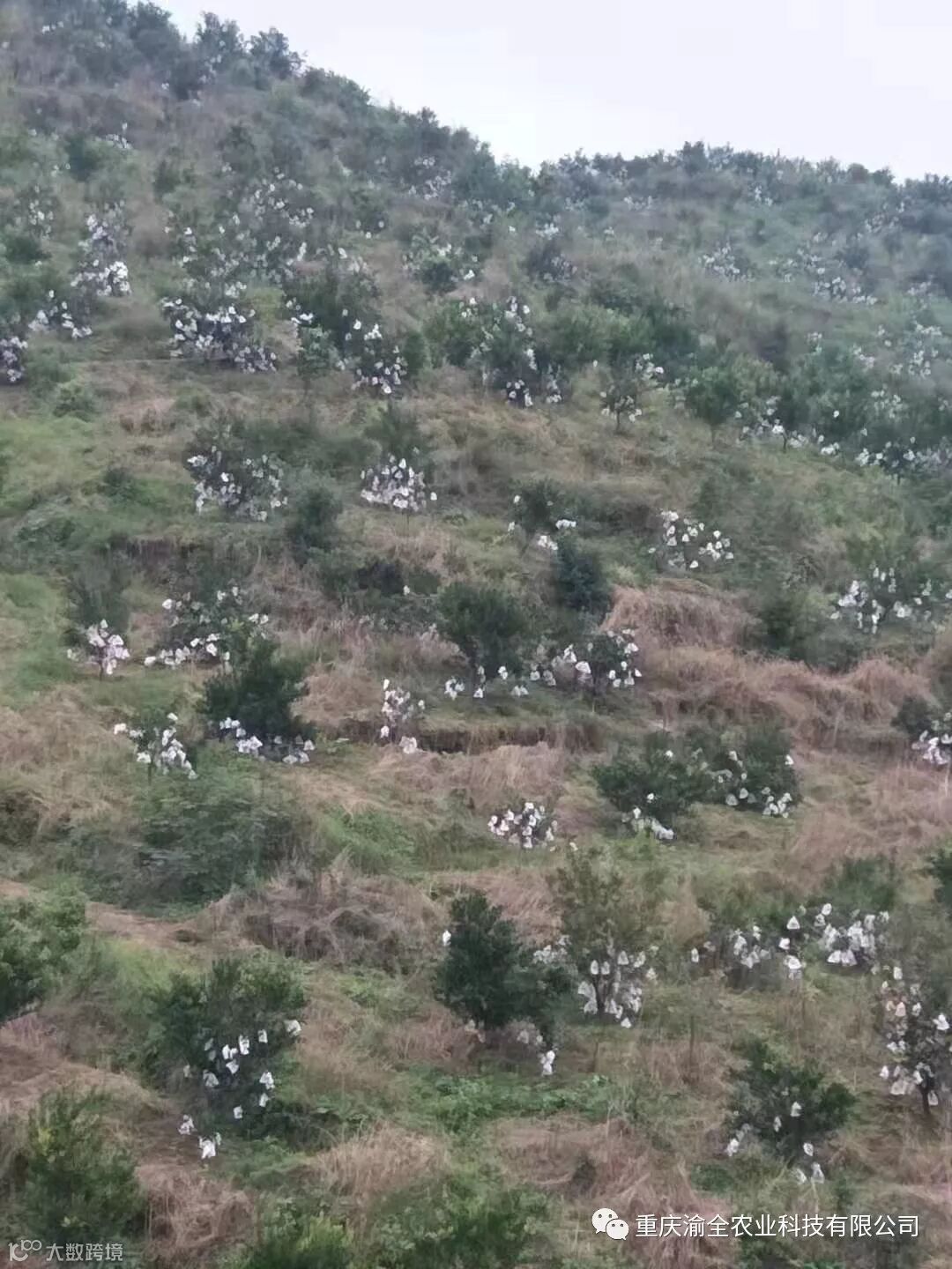 位于重庆忠县的渝全生态园的万亩大雅柑橘即将成熟,现已完成采果前的“套袋”工作。