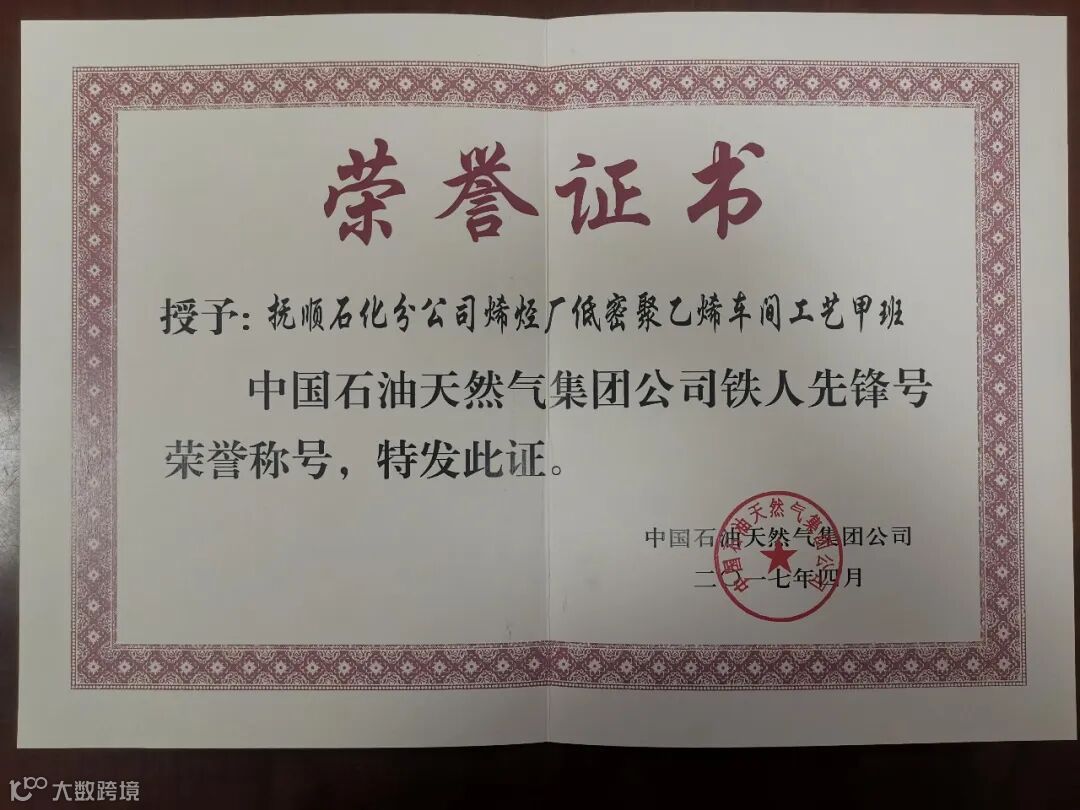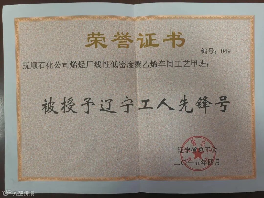 低密聚乙烯车间工艺甲班曾获辽宁省工人先锋号、优秀班组、集团公司铁人先锋号、公司王海式班组、公司班组劳动竞赛一等奖、烯烃厂先进班组等多项荣誉称号。该班组全体员工将立足岗位、严细管理、务实创新,出色完成各项生产任务,为装置稳定生产和创新创效贡献力量。