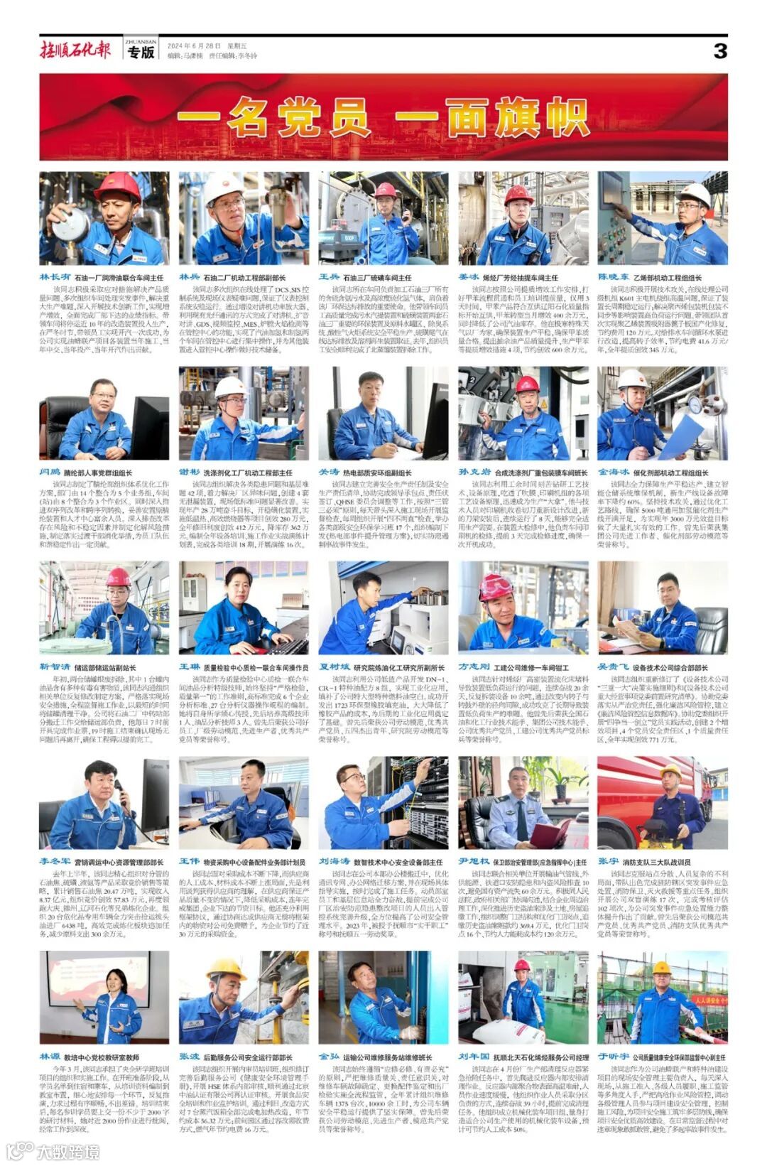 《抚顺石化报》2024年6月28日 抚顺石化人