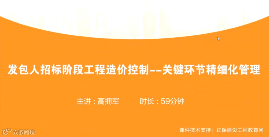讲课内容:发包人招标阶段工程造价控制--关键环节精细化管理、发包人施工阶段造价控制--关键控制点的研究