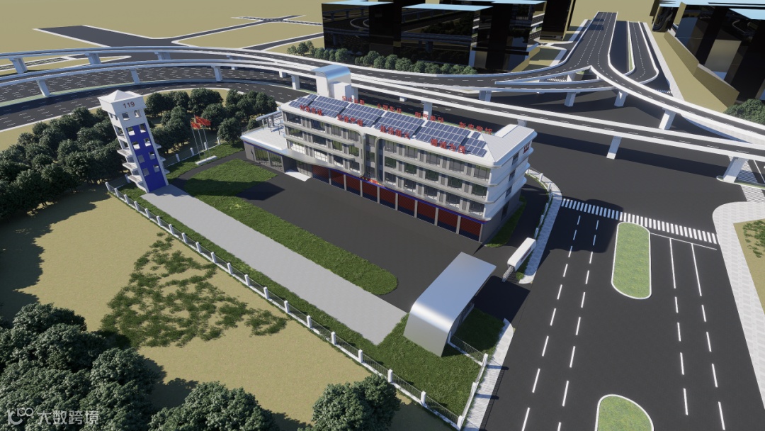 新建东站消防站项目坐落于上海市浦东新区祝桥镇祝桥物流园,毗邻东方枢纽核心区,总建筑面积约6384平方米。项目主要建设内容包括一栋地上4层、地下1层的消防综合楼,以及消防训练塔、消防车停车位,配套建设相关训练场地与设施,旨在打造功能复合、响应迅速的现代化特勤消防站。