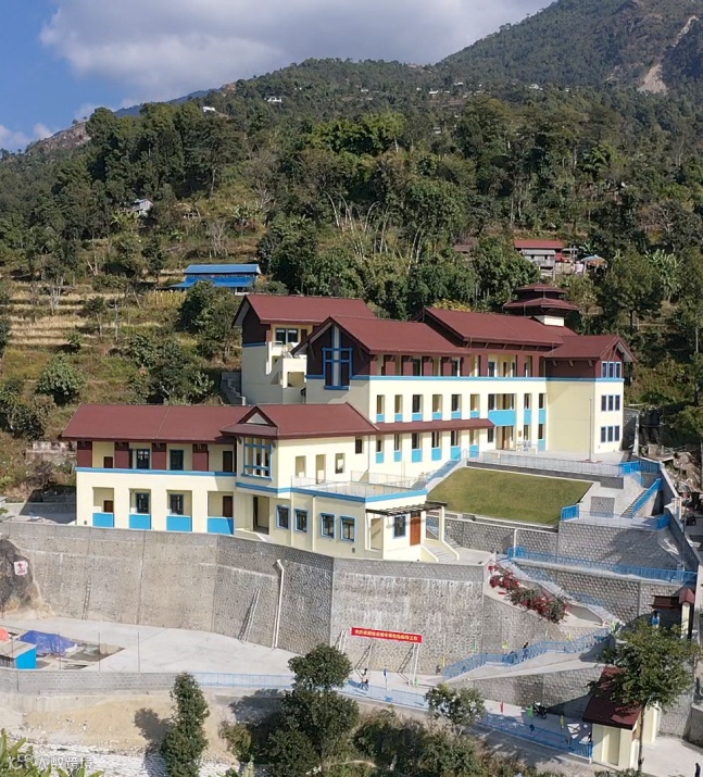 援尼泊尔多拉卡县公立学校恢复项目包括两所学校,分别位于尼泊尔多拉卡县Jilu (吉鲁)地区和Singati (新格地)地区,总建筑面积约7000平方米,建成后可满足当地幼儿园~12年级学生的教学任务。项目于2020年12月27日正式开工,2023年10月10日竣工。