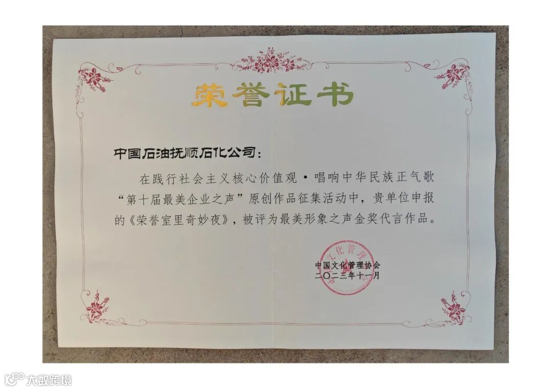 近日,中国文化管理协会企业党建与企业文化工作委员会向我公司发来喜报,祝贺抚顺石化公司2023年企业文化建设方面取得的优秀成绩。