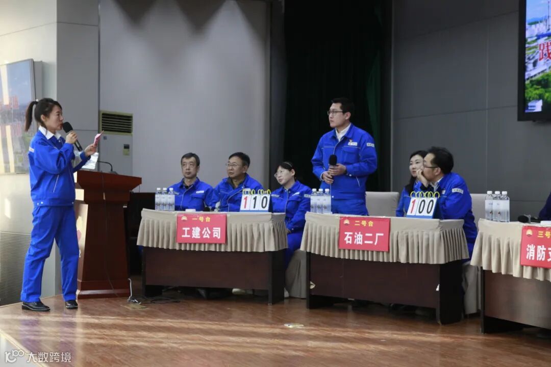 石油二厂、石油三厂、乙烯部、消防支队、工建公司、离退休管理中心,共6支代表队通过预赛的选拔入围到决赛中。本次知识竞赛分为必答题、抢答题、风险题三个竞赛环节,并且结合比赛进行情况还穿插了与现场观众互动环节,现场气氛紧张而热烈。