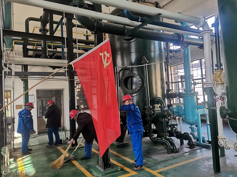 水汽系统党支部8名党员组成突击队,对精制水泵房中9台机泵进行卫生清理。让党员成为设备安全的可靠防线。在党员们的不懈努力下,泵房面貌大大提升。