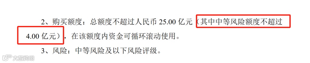 有的公司在进行年度委托理财预计时,会明确写明风险等级,预计购买总额度以及中等风险产品的额度。