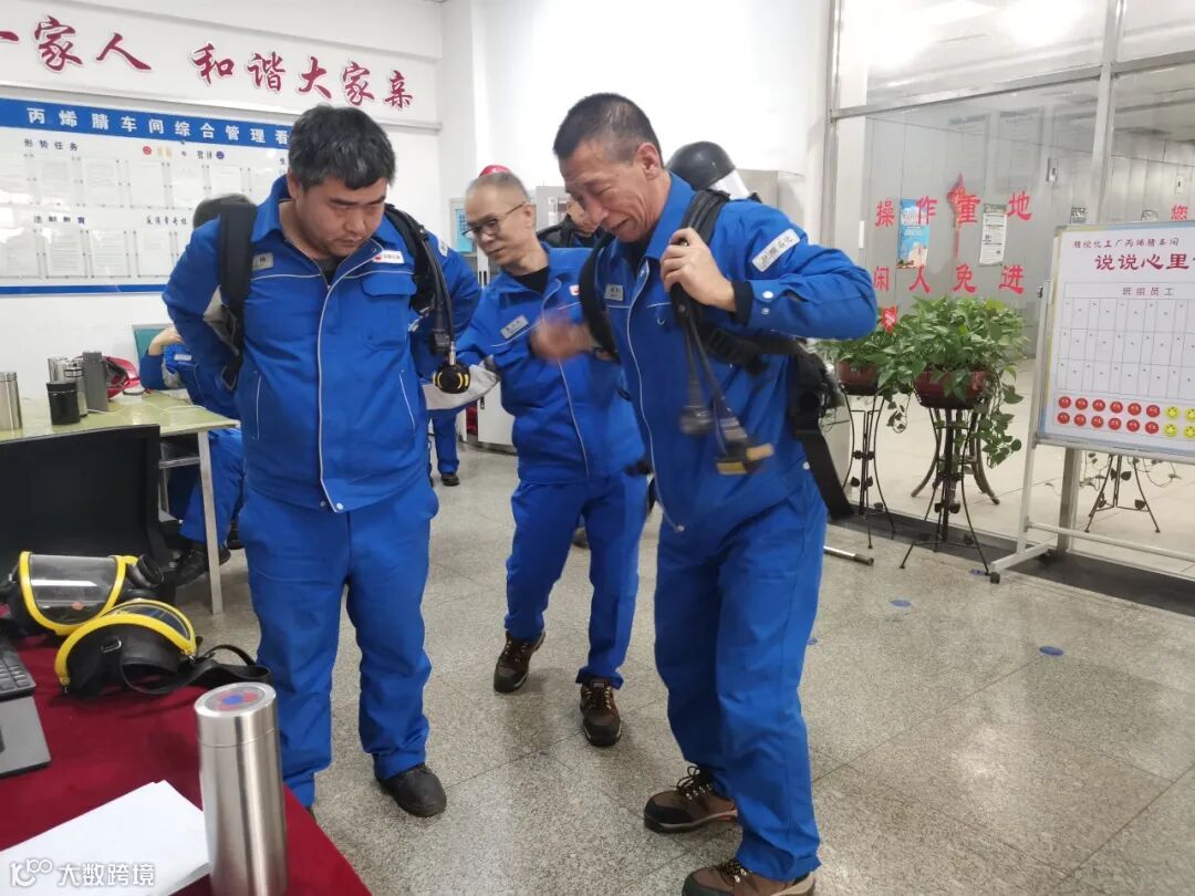2023年6月21日上午,一声“氢氰酸泄漏了!”打破了丙烯腈装置现场的宁静。随即演练指挥徐睿迅速下指令,刚才还在各自岗位上工作的同事们在短短几分钟内快速做出反应。