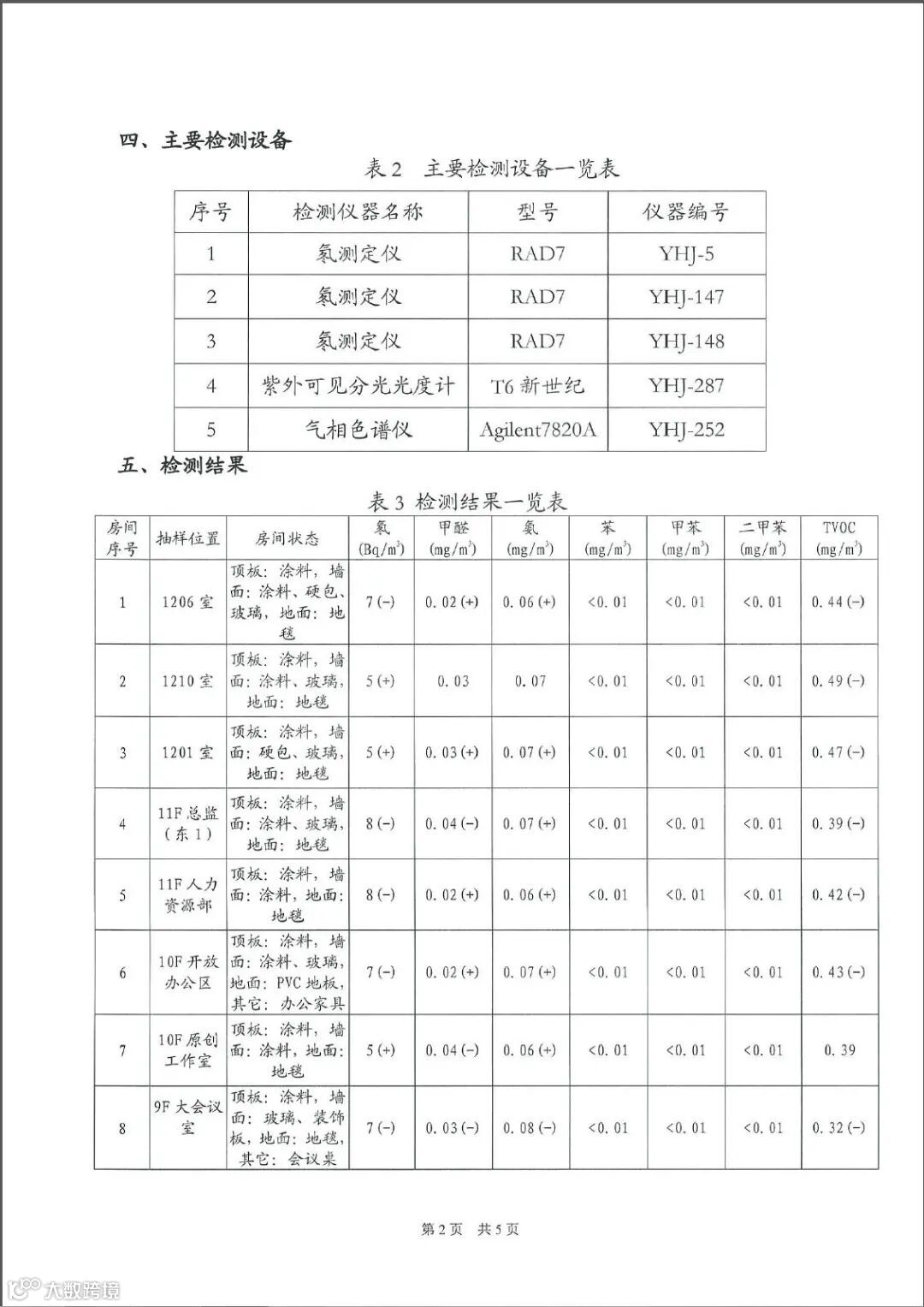 左右滑动查看8-15F环境检测报告