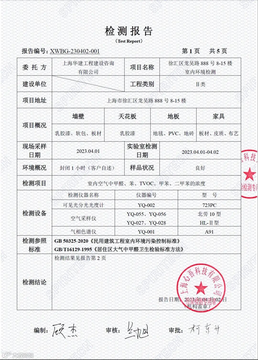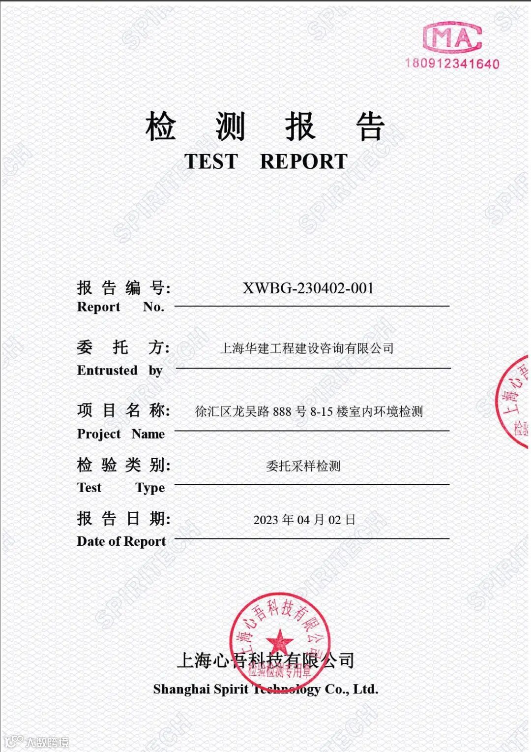 4月3日,公司将在龙吴路888号新址办公。前期,公司已开展了多次环境治理工作,那么治理结果如何呢?让我们一起来看看第三方检测