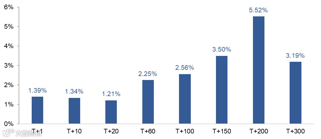 回购预案发布前后100个交易日的日均超额收益率(%)